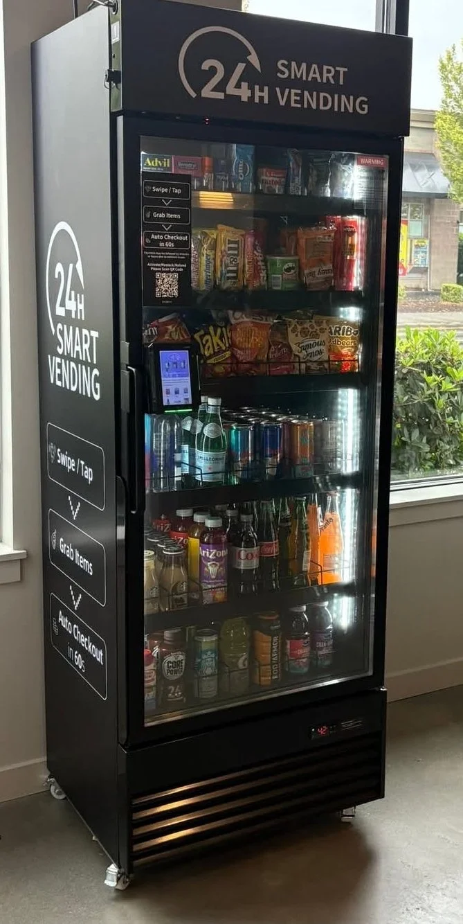 Our smart coolers bring secure, cashless, and modern food and beverage solutions to your business- simple, sleek, and fully managed.